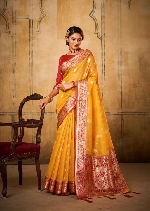 Elevate your style to regal heights with the captivating BANARSI TISSUE SILK SAREE. • Exquisite...