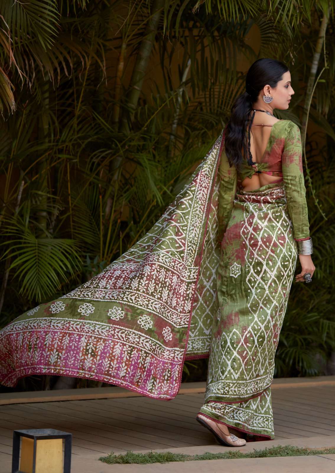 Elevate your style with the captivating Batik Printed Fancy Saree - a masterpiece of vibrant colors and timeless elegance.