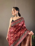 Elevate your ethnic wardrobe with our exquisite Kalamkari Silk Saree, featuring a stunning color palette. This beautifully crafted saree showcases intricate printed designs that reflect the rich cultural heritage of Kalamkari art, making it a perfect choice for festive occasions and celebrations. The luxurious silk fabric drapes elegantly, ensuring comfort and style, while the vibrant colors add a touch of sophistication to your ensemble. Embrace tradition with a modern twist and make a statement wherever you go.