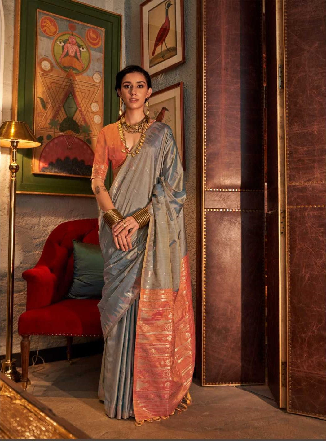 Elevate your style with the captivating elegance of our Tussar Silk Saree. This exquisite garment is a masterpiece of timeless beauty, woven with the finest natural fibers to create a luxurious drape that will leave you feeling confident and poised.