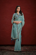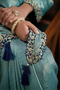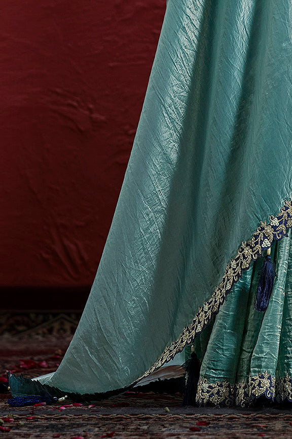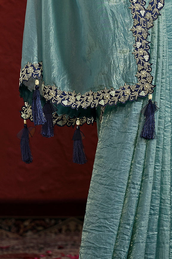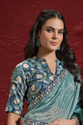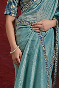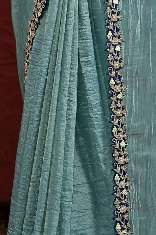 Paper Silk Pleat Moti with Handwork Saree with Stitched Blouse