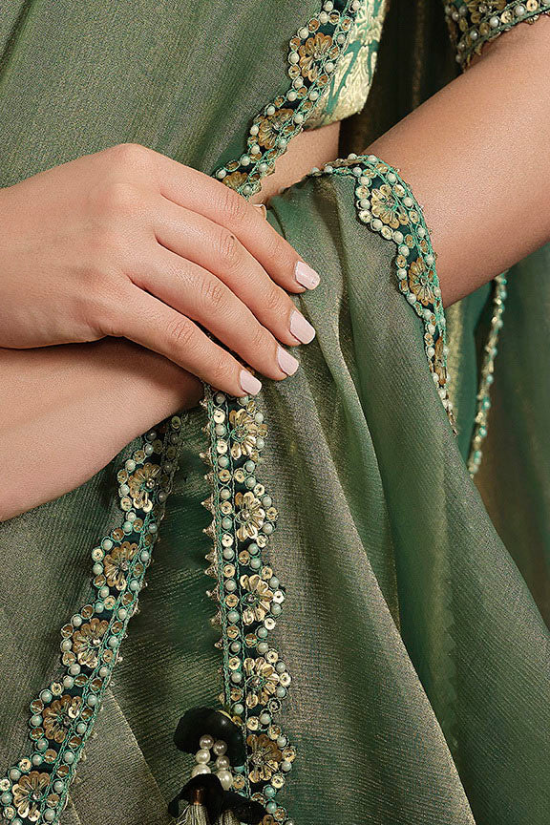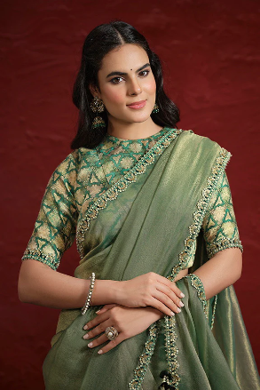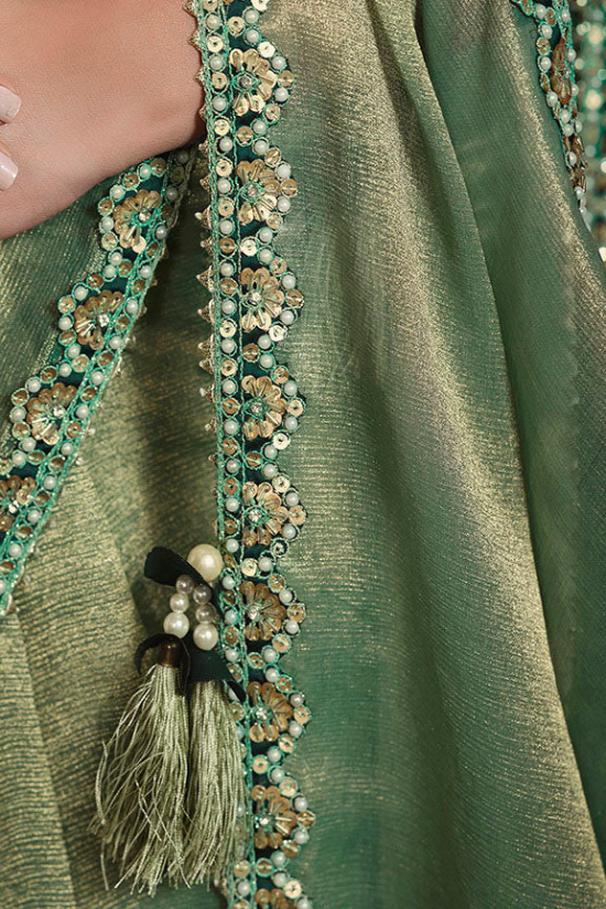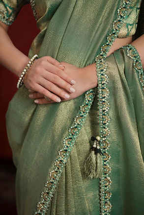 Pure Banarasi Jari Sequence with Handwork Saree with Stitched Blouse
