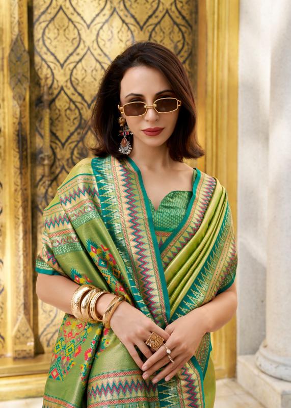 Elevate your style with the captivating elegance of our Tissue Silk Ikkat Pattern Saree. This exquisite garment is a masterpiece of traditional craftsmanship, woven with the finest silk threads to create a breathtaking ikat design that will leave you feeling like a true fashion icon.